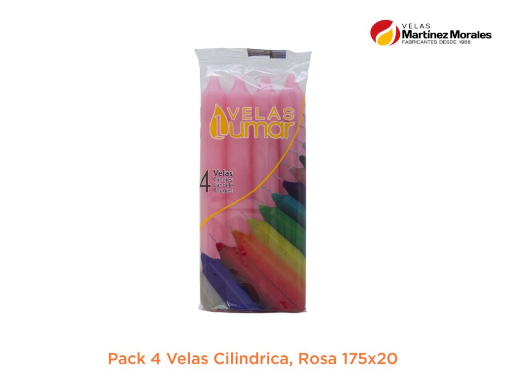 PACK 4 VELAS CILINDRICA, ROSA. 175X20