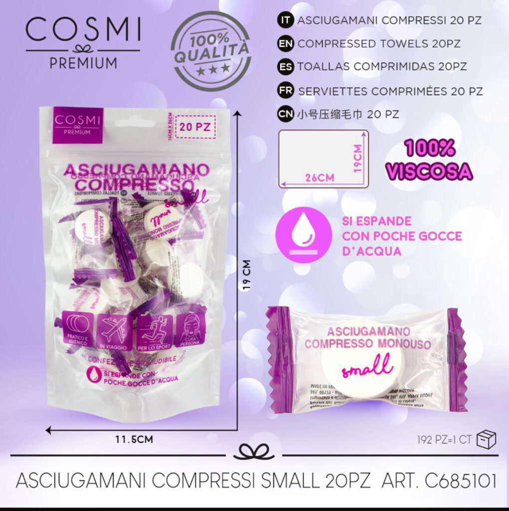 TOALLITAS COMPRIMIDAS 20PZ PEQUENO 16*26CM