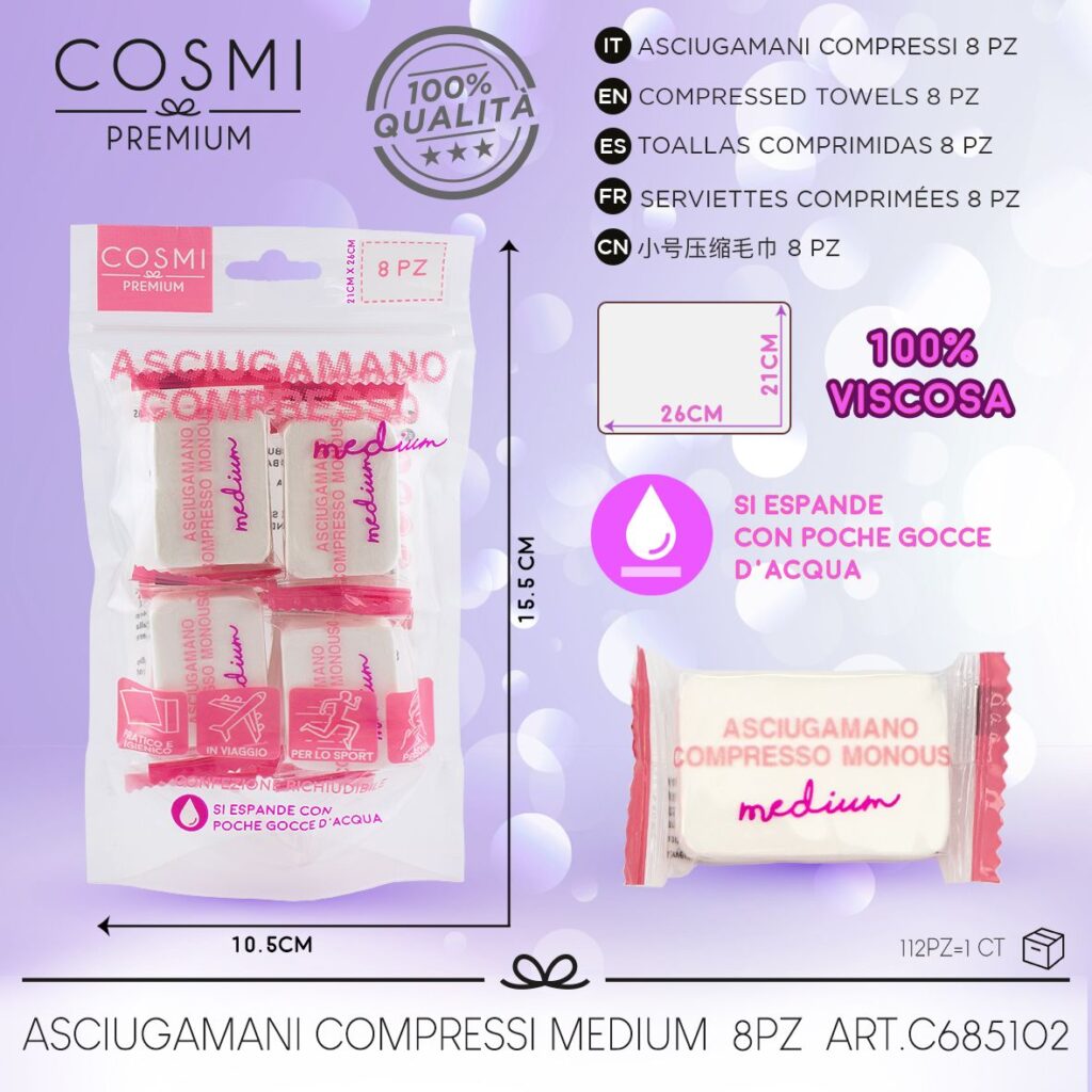 TOALLITAS COMPRIMIDAS 8PZ MEDIANO 21X26CM